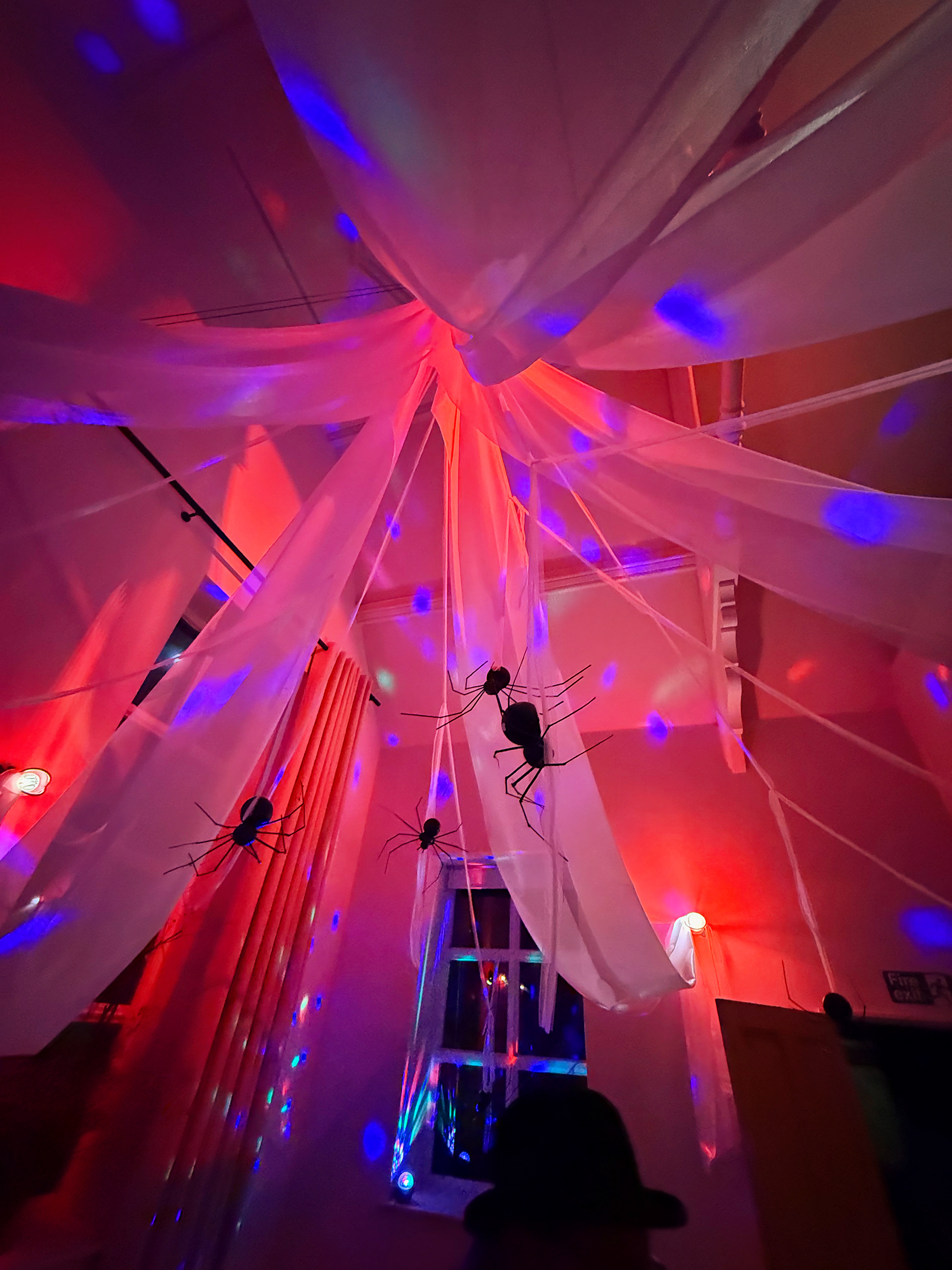 As the moon climbs high and shadows dance upon the walls, our friendly spider stirs in its web, waiting for the night of trickle treats, laughter, and a little mischief.